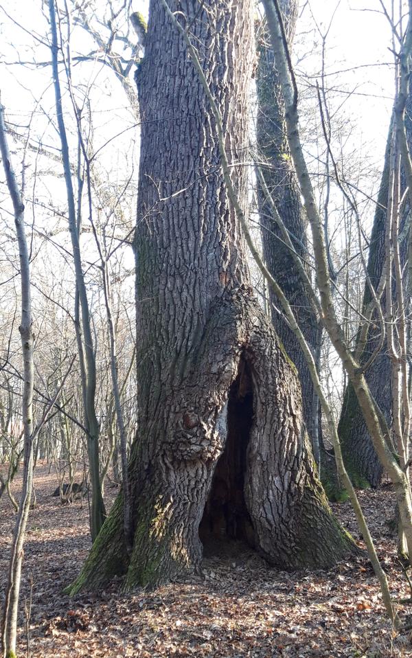 | Aceast arbore a fost unul dublu in trecut, avand trunchiul mult marit la baza.Parcul din jurul castelului, care acum este proprietata privata, adaposteste o populatie mare de arbori seculari, predominant stejari, la care se adauga alte specii native (par paduret, frasin, salcii, jugastru etc) sau exotice (castan porcesc, nuc negru etc.). | |